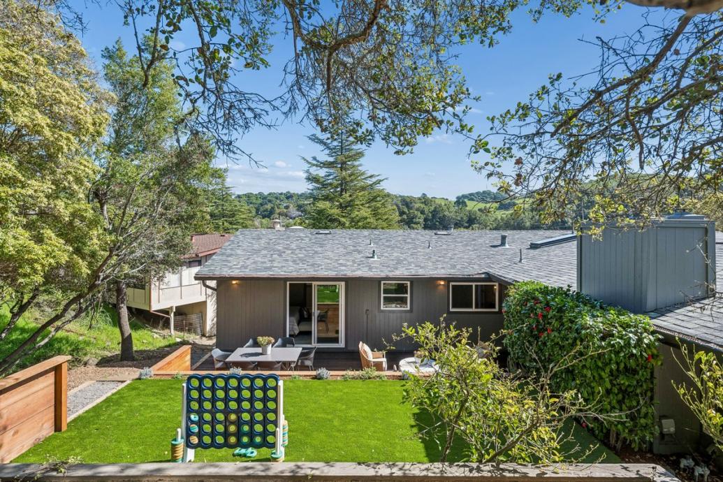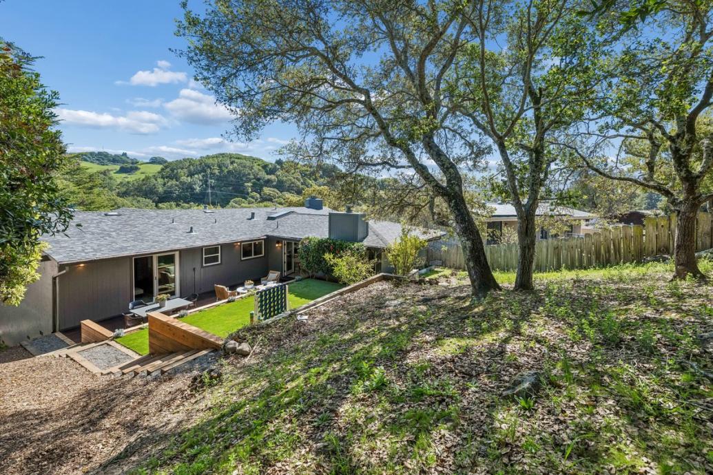 15 Underhill Road blends mid century charm with stylish modern comfort in Mill Valley's sought after Scott Valley neighborhood. This beautifully updated home offers 4 bedrooms, 2.5 bathrooms, and approximately 2,515 sq ft of thoughtfully designed indoor/outdoor living, all on one level. Vaulted ceilings and generous windows in the living room and dining room fill the home with natural light, while the original narrow plank white oak floors and corner fireplace add warmth and character. The remodeled kitchen features contemporary finishes, mostly new stainless steel appliances, and a layout opening directly to the family room, where a second fireplace creates a cozy, inviting atmosphere. The living, dining and family rooms offer direct access to two separate decks, making for seamless indoor‑outdoor living. The private, tiered backyard boasts a patio/deck, ideal for al fresco dining, and a flat turfed play area, providing the perfect space for play, recreation, or simply enjoying the outdoors.